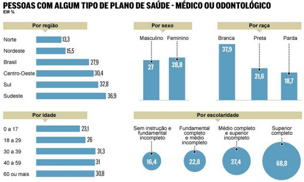 Disponível em: https://oglobo.globo.com/saude/quase-30-dos-brasileiros-tem-plano-de-saude-diz-nova-pesquisa-do-ibge-16325726